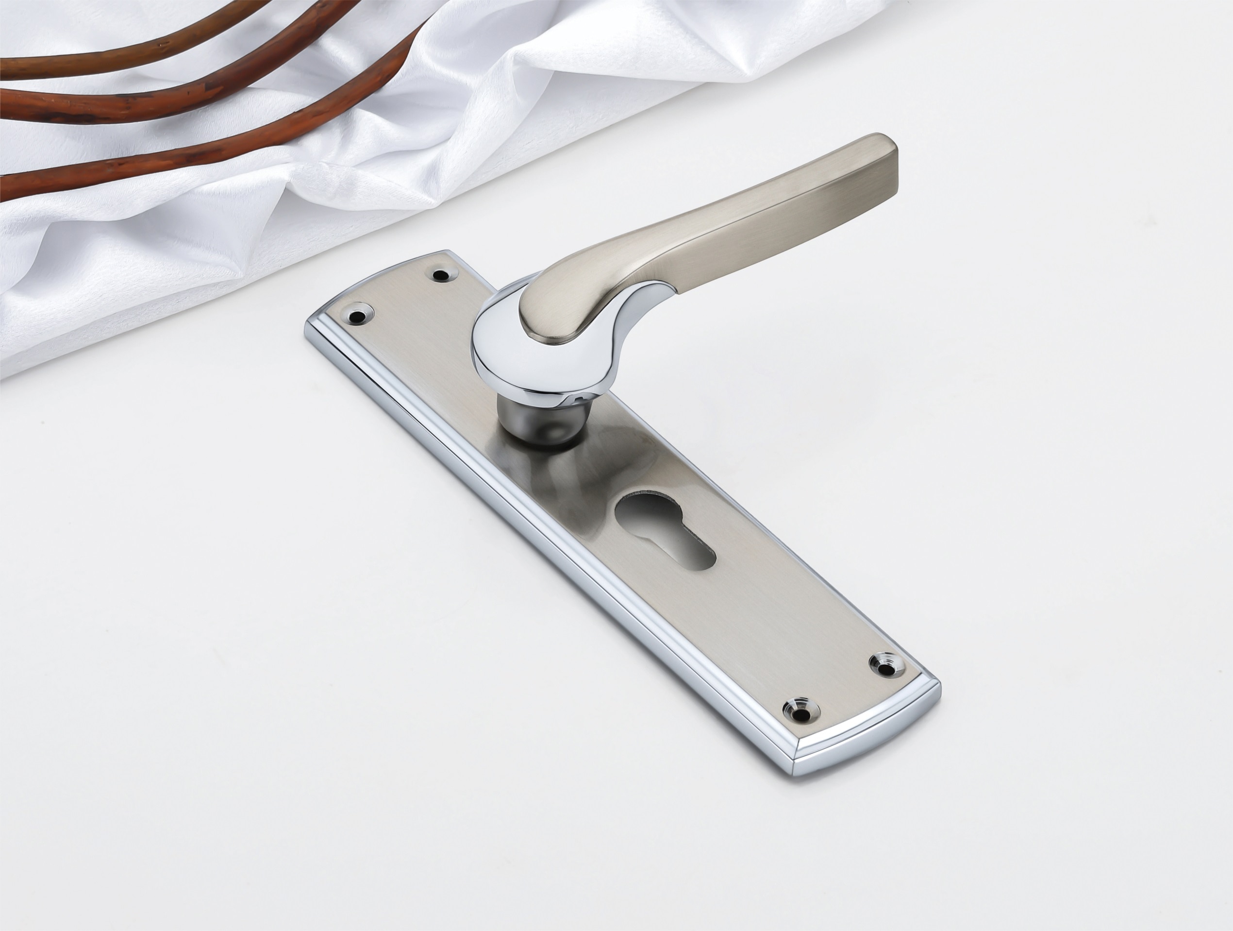 Premium 8" handle lock with a sleek, contemporary design and fully covered lower body for a refined look and added protection. Built with corrosion-resistant materials to ensure longevity and maintain its elegant appearance. Features a durable brass cylinder for reliable security. Comes with computerized brass keys, offering enhanced security and precision. This combination of style, robustness, and advanced security makes it a perfect choice for various applications. The 8-inch size provides a comfortable and substantial feel. Keywords: 8", premium handle lock, corrosion resistent, sleek design, fully covered lower body, brass cylinder, computerized keys of brass.