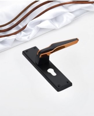 This image features a premium 8" handle lock with a striking modern aesthetic, combining matte black with elegant rose gold accents. The handle showcases a sleek design that complements contemporary interiors while offering exceptional functionality. Crafted with a fully covered lower body, it ensures a clean and seamless installation look. The structure is corrosion-resistant, ensuring long-term durability even in challenging environments. The rectangular backplate includes a precision-cut keyhole, enhancing both security and style. This high-end handle lock comes with a solid brass cylinder and computerised keys made of brass, delivering superior security and smooth operation. The contrast between the matte black body and the glossy rose gold lining elevates the visual appeal, making it a centerpiece for any premium door setup. Set against a white fabric background with flowing copper-toned lines, the image highlights the handle's luxurious charm and engineering excellence—perfect for high-end residential or commercial spaces.