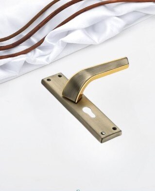 This image showcases a premium 8" handle lock featuring a beautiful dual-tone finish that blends brushed antique brass with a luxurious golden edge. Designed with a sleek, modern silhouette, the handle adds a touch of elegance to any space while ensuring ergonomic comfort and easy operation. The fully covered lower body ensures a flawless installation with no visible hardware, maintaining a clean and polished look. Built with corrosion-resistant materials, this handle lock is ideal for long-lasting use in both residential and commercial settings. The rectangular backplate includes a keyhole slot for added functionality and security. This model comes equipped with a high-quality brass cylinder and computerised keys made of solid brass, ensuring top-tier security and smooth performance. The soft white fabric background with flowing copper lines enhances the warm tones of the handle, creating an overall impression of luxury and refinement. A perfect combination of aesthetics, strength, and premium features.
